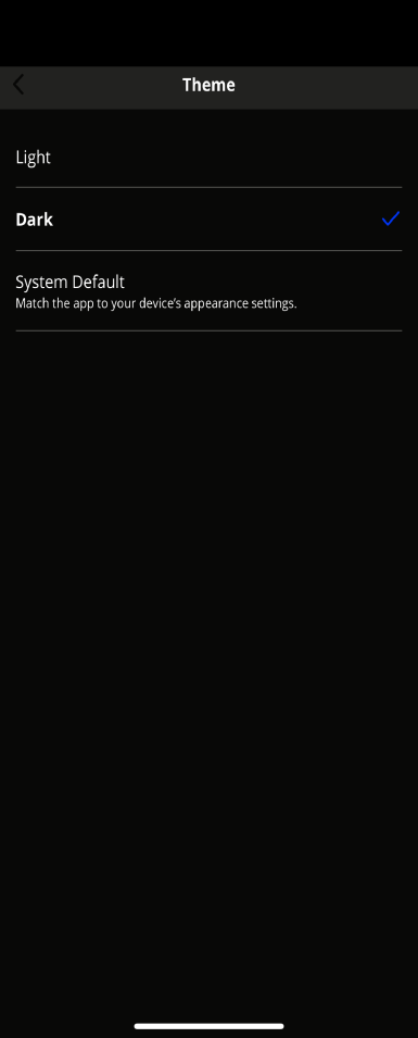 To match the same theme of your device, select System Default or choose either Dark or Light.