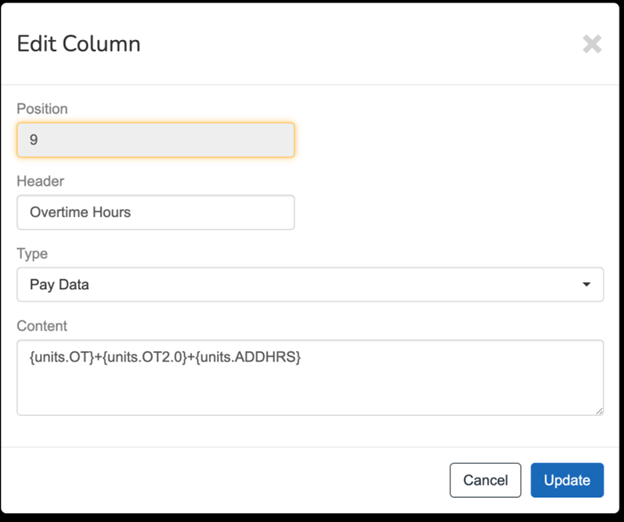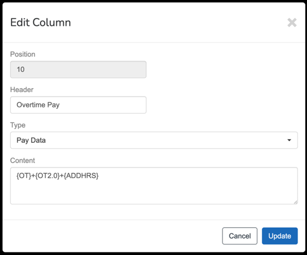 The Content for Pay Data column supports other mathematical functions as well as adding values together.